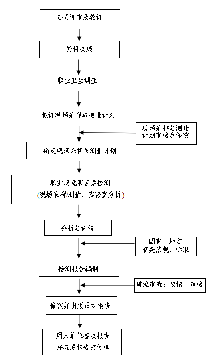 职业病危害因素检测办事流程图 职业病危害评价办事流程图